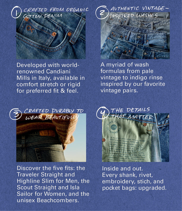 Available in five dialed-in fits: the all-new Traveler Straight and Highline Slim for Men, the Scout Straight and Isla Sailor for Women, and the unisex Beachcomber Relaxed, back for everyone.